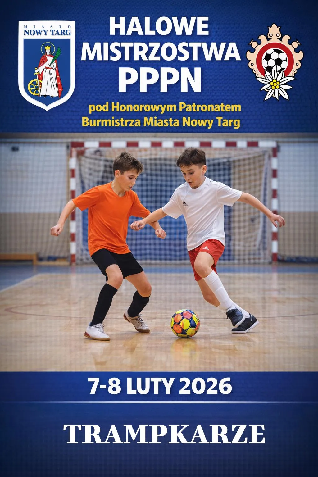 Halowe Mistrzostwa PPPN w kategorii Trampkarzy odbędą się pod Honorowym Patronatem Burmistrza Miasta Nowy Targ. Turniej zaplanowano na sobotę 7 lutego oraz niedzielę 8 lutego 2026 roku, a areną piłkarskich zmagań będzie hala Zespołu Szkół Technicznych w Nowym Targu.
