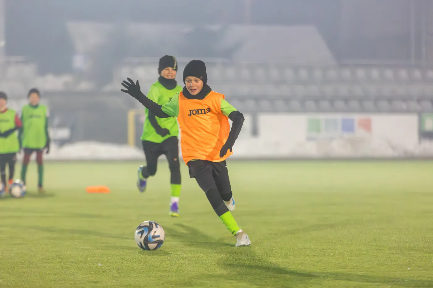 Zawodniczki i zawodnicy odbyli intensywny trening oraz rozegrali grę kontrolną na Stadionie Miejskim w Nowym Targu.