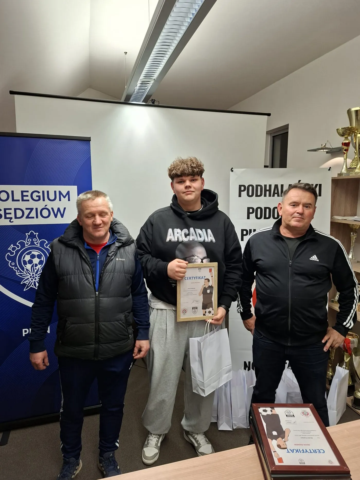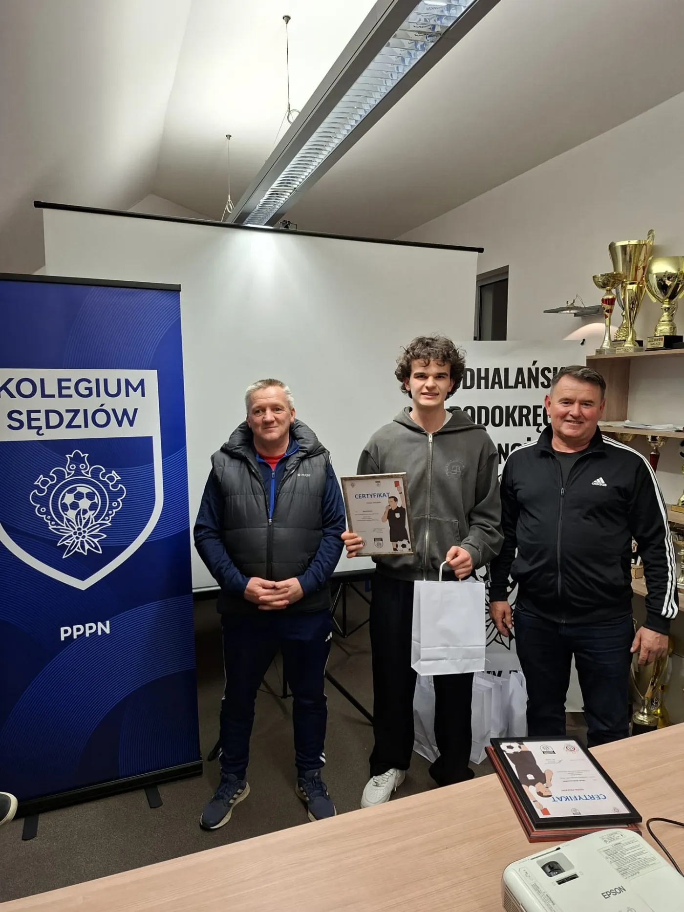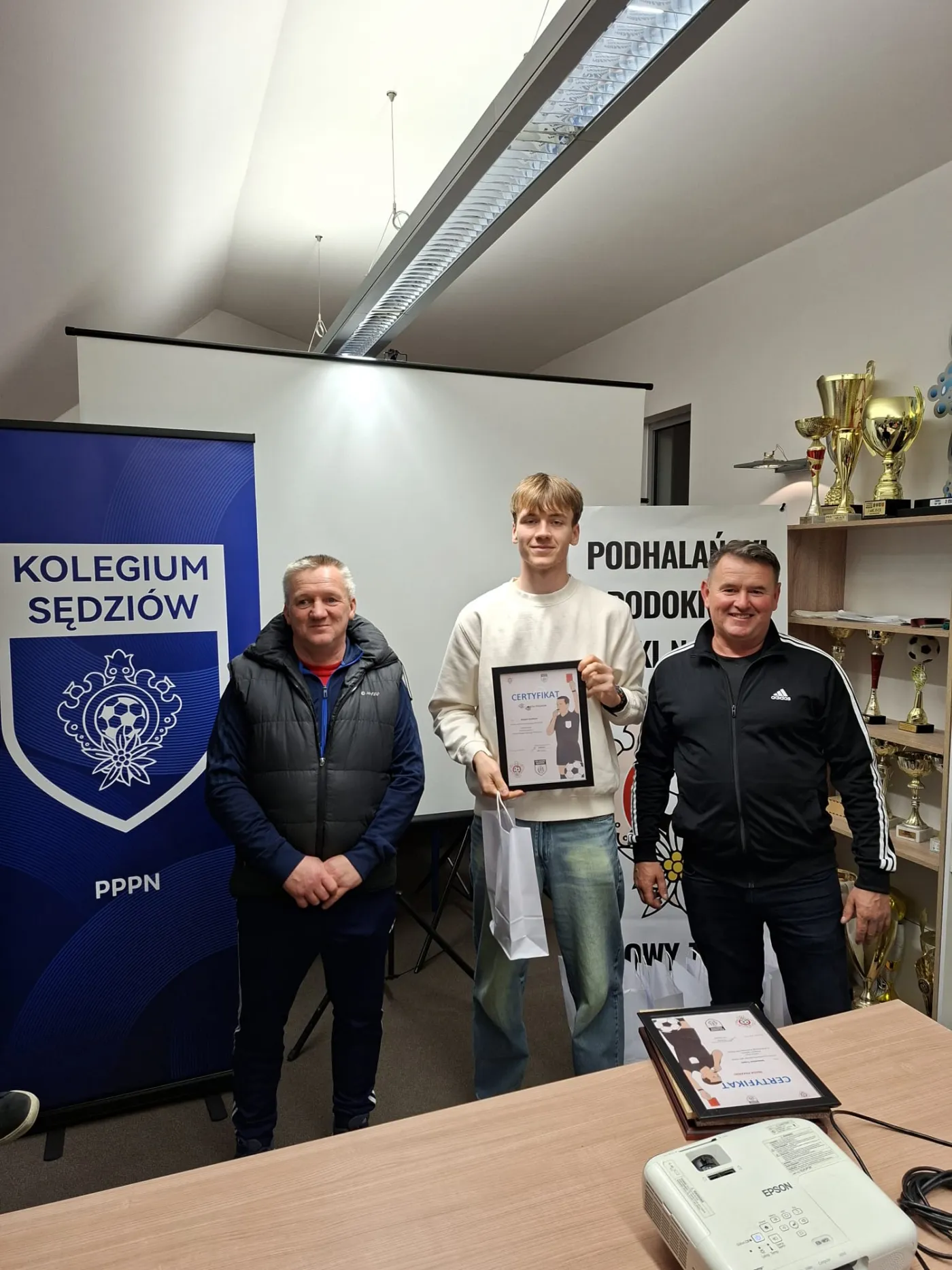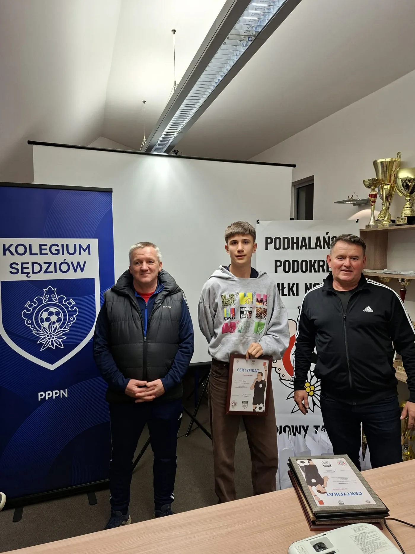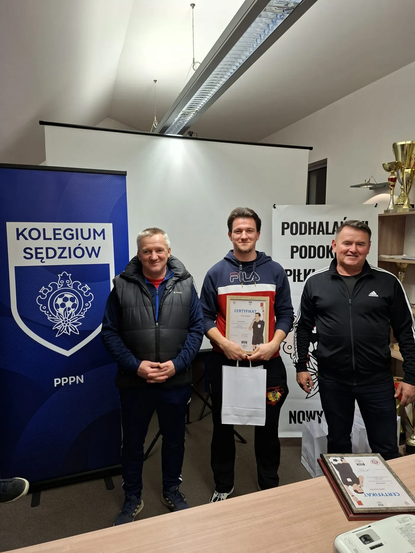 Po ponad dwóch miesiącach intensywnych zajęć kurs oficjalnie podsumował i zamknął Jan Chlipała – przewodniczący Kolegium Sędziów Podhalańskiego Podokręgu Piłki Nożnej. Dziękujemy również za obecność i wsparcie naszych kolegów z zarządu: